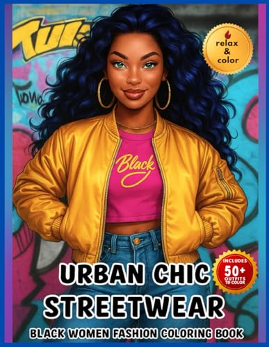 Black women fashion coloring book, urban chic Streetwear for Blacks Girls Fashion and Afrocentric Style for Teens and Adults: Trendsetting Outfits, Hip-Hop Fashion. Perfect Gift to Celebrate Diversity