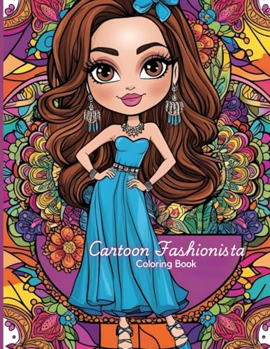 Cartoon Fashionista Coloring book: Glam and Chic Outfits for Girls, Teens, and Fashion lovers.: 28 Fashionable Coloring Pages with Princess-inspired Dresses, Trendy Outfits, Jewerly, and More.