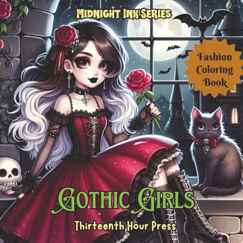 Gothic Girls Goth Fashion Coloring Book for Teens and Adults: Cute and Creepy Kawaii Dresses with Black Background