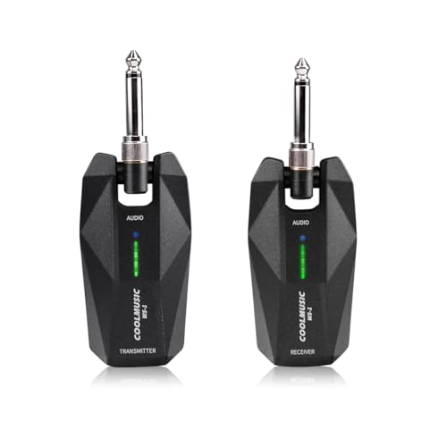 Coolmusic 5,8 GHz stereo trådlöst gitarrsystem med 1/4 tum och 1/8 tum pluggar för musikinstrument uppladdningsbar gitarr, trådlös sändare, mottagare, sladdlös, elektriskt guiarbly för gitarr,