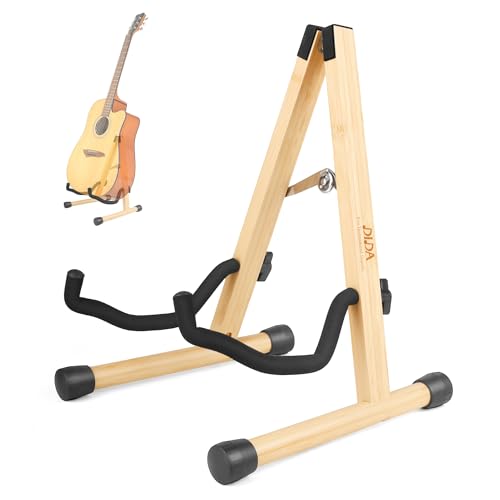 Gitarrstativ, gitarrstativ för akustisk gitarr, trä A-ram gitarrgolvstativ för akustiska gitarrer, halkfri gummistoppning och skumarmar, enkel gitarrhållare stativ (ambu, akustisk gitarr)