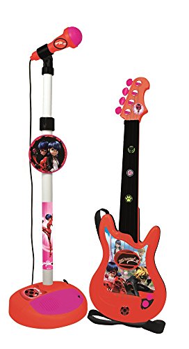 Reig 2675 Miraculous: Tales of Ladybug & Cat Noir gitarr med stativmikrofon och förstärkare, röd