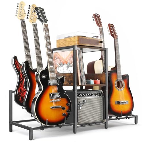 Bikoney Förvaring av Vinylskivor, Gitarrstativ för Akustisk Gitarr, Elgitarr Och Bas Med Förstärkarstativ, 3-stegs Skivspelarställ för Upp Till 200 Album för Skivspelare, Högtalare, Förstärkare