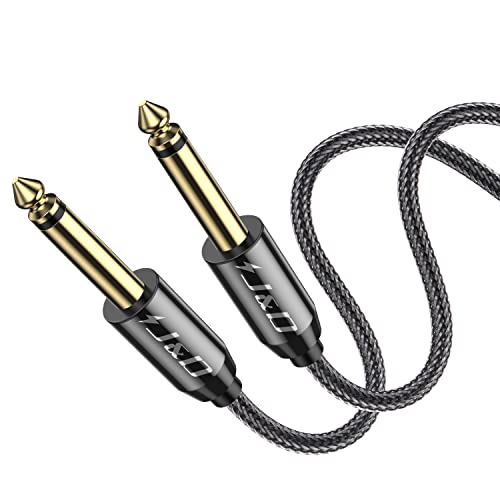 J&D 6,35 mm Gitarr Instrumentkabel, Guldpläterat Kopparskal Heavy Duty 6,35 mm 1/4 Tum TS Mono Ljudkabel med Zinklegeringshus och Nylonfläta för Gitarr, Multieffekter, Förstärkare, 1,8 m