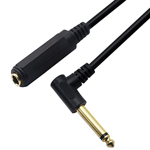 HTGuoji Höger vinkel 6,35 hane till hona kabel, 1/4 stereo TS hörlurar förlängningssladd för gitarr AMP synths förstärkare högtalare piano