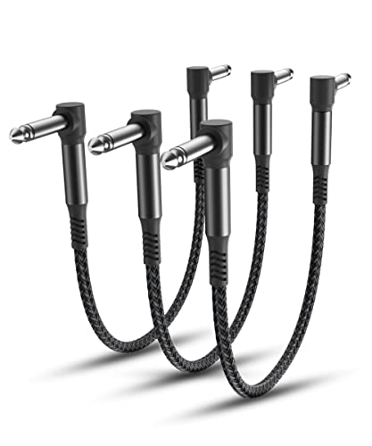RUXELY Gitarr Patch Kablar 15CM 3-Pack,6,35MM Effekter Pedal Board Sladd,Nylon Flätad 1/4" Rätvinklig Instrument Ljudkabel,Pedalboard Kontakt TS Koppartråd För Förstärkare/Förstärkare,Mixer,Elbas