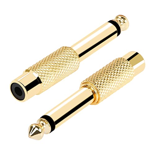 PNGKNYOCN 1/4 tum till RCA ljudadapter, guldpläterad RCA till 6,35 mm mono TS ljudkontakt för gitarr, mixer, förstärkare (2-pack)