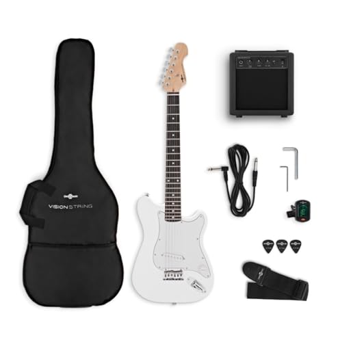 VISIONSTRING Elektrisk gitarr för barn 3/4 storlek Elektrisk gitarr startpaket med förstärkare för nybörjare Vit