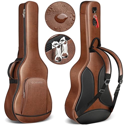CAHAYA Gitarr väska akustisk gitarr Gig Bag – brun vattentät PU gitarrfodral med andningsbar 15 mm tjock stoppning – gitarrväska med dubbel dragkedja för 101 101 cm gitarr, BRUN, akustisk gitarrväska