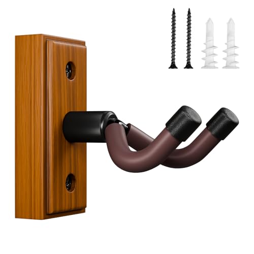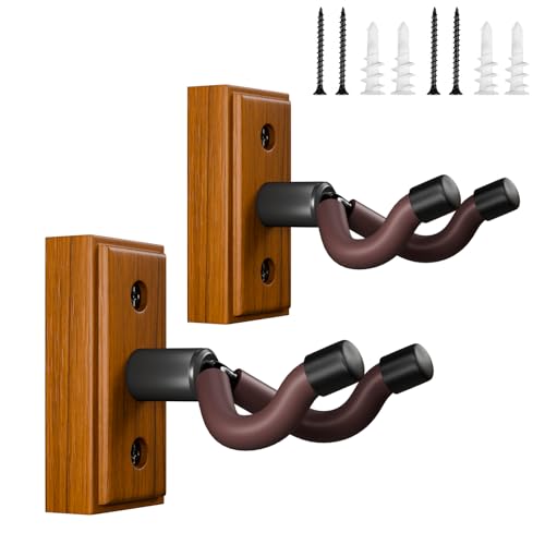 Gosizos Gitarrhållare för väggen, bil låsning husarren vägghållare, trä för gitarrhållare för akustisk elgitarr, bas, banjo, mandolin, gitarrtillbehör (valnöt x 2)