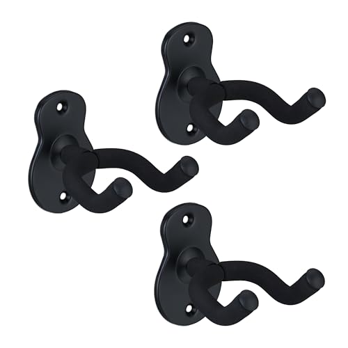 Fousenuk 3 stycken gitarrhållare vägghållare, gitarrkrok svart gitarrställ vägghållare, gitarrväggfäste för akustisk gitarr, klassisk gitarr, elgitarr, bas, ukulele