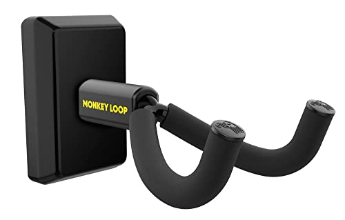 MONKEY LOOP Wall Prime Black - Väggmonterad gitarrhållare - Elektrisk eller akustisk gitarrhängare på väggen - Gitarrställ med skyddande gummi - 55 mm öppning - svart färg