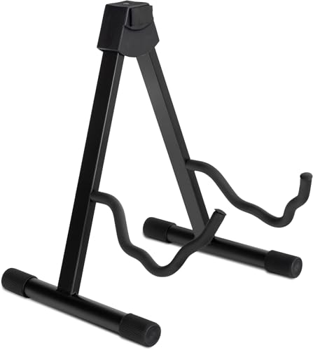 iGadgitz Xtra U6995 – A Frame Guitar Stand fällbart akustiskt gitarrstativ, universellt basgitarrstativ, bärbart elgitarrstativ med skumarmar – klassisk, akustisk, elektrisk, bas – svart
