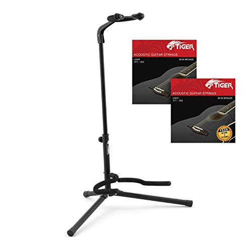 TIGER Universellt gitarrstativ och 2 förpackningar akustiska gitarrsträngar