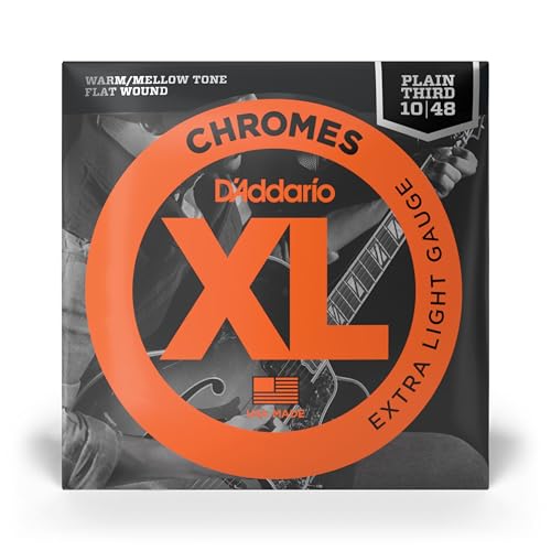 D'Addario gitarrsträngar – XL Chromes elgitarrsträngar – platt sår – polerad för ultramjuk känsla och varm, mild ton – EKG 23-PL – extra lätt, enkel tredjedel, 10-48, 1-pack