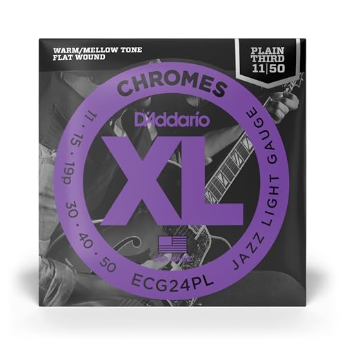 D'Addario gitarrsträngar – XL Chromes elgitarrsträngar – platt sår – polerad för ultramjuk känsla och varm, mild ton – EKG 24-PL – jazzljus, enkel tredjedel, 11-50, 1-pack