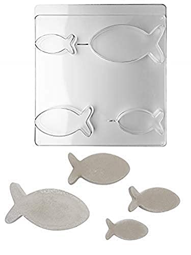 Rayher 36083000 gjutform fisk, 4 storlekar, 7,5 – 14,5 cm, djup 3 cm, material PET, för hällning med kreativ betong, raysingjutpulver, tvål, vax, betonggjutform