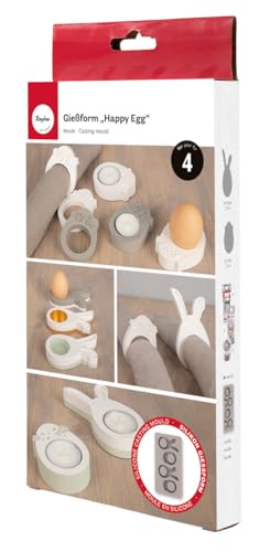Rayher Silikongjutform "Happy Egg", format 14,5 x 26 cm, djup 2 cm, 4 former, för hällning med kreativ betong, hartsgjutharts, raysinpulver, gjutform påsk, 36136000