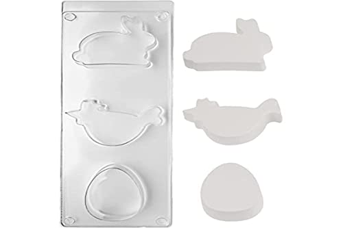 Rayher gjutform kyckling, kanin, ägg, motivstorlek ca 5 – 8 cm, betonggjutform av PET, för dekorativa föremål eller ljus, för hällning med kreativ betong, raysingjutpulver, vax, tvål, 36071000
