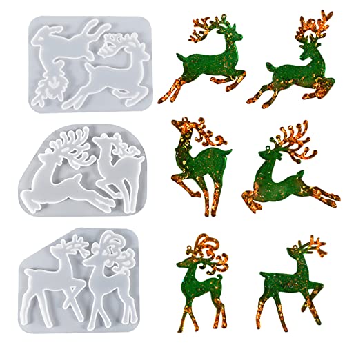 Bekecidi 3 st julhartsformar, älgformade silikonformar, epoxiharts, hantverk, gjutform, gör-det-själv, silikon, hänge, form för julgran, nyckelring, heminredning, hantverk, gåvor