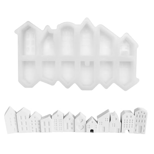 Silikonformar gjutformar hus, 12 st mini silikonform hus, silikon gjutform minihus, silikonform hus ljushållare gjutformar silikonhus för jul, halloween, påsk