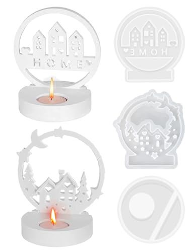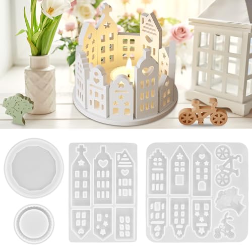3 st hus silikonform, silikonform ljushållare, gjutformar för gjutning silikon med bas ljusformer, ljushus epoxihartsformer, gör-det-själv hantverk hus gjutform för bas gjutform tvålgips