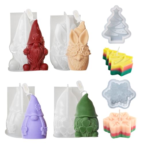 6 stycken tomtar med silikonform, silikonform ljus jultomte, jul dvärg ljusform, formar tvålform, för gör-det-själv silikon ljus gjutform, gnomme snöflinga gran dekoration juldekorationer