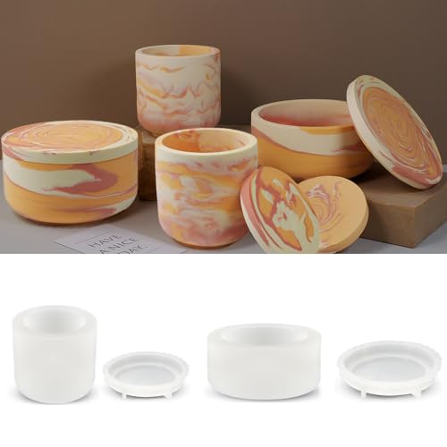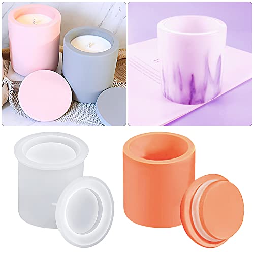 HNLMZ Silikonformar gjutform, 2 stycken ljushållare silikonform, epoxiharts form förvaringslåda, ljusglas med lock silikon ljushållare gjutform för tillverkning av hantverk