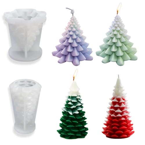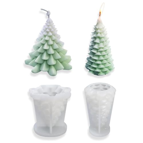 Norhogo 2 stycken silikon julgran ljusform, 3D ljusgjutform gör-det-själv silikon ljus gjutform ljusformar för tillverkning av ljus, aromstenar, julhantverk ornament
