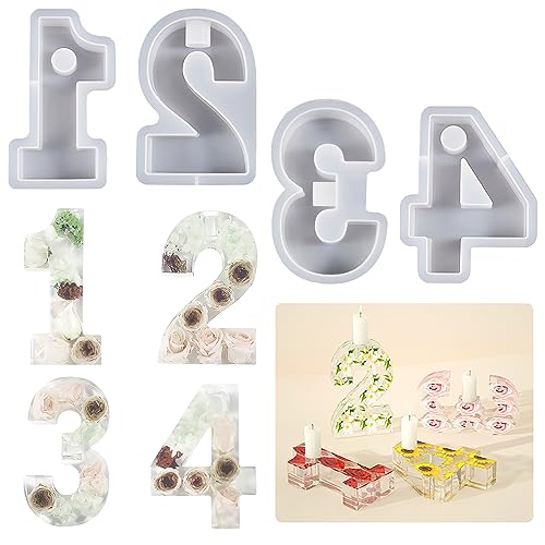 1–4 siffror form gör-det-själv silikonform, silikonform ljushållare, siffror ljusform betong silikon ljusstake gjutform ljushållare gipsform handgjord epoxiharts för heminredning