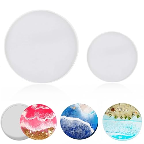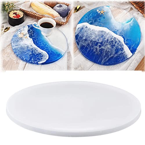 Runda brickor i silikon, epoxiharts, silikonformar för epoxiharts, gjutform, hantverk, verktyg, gör-det-själv, serveringsbricka, form, service, bräda, underlägg, gjutform, heminredning, målningskonst (50 cm)