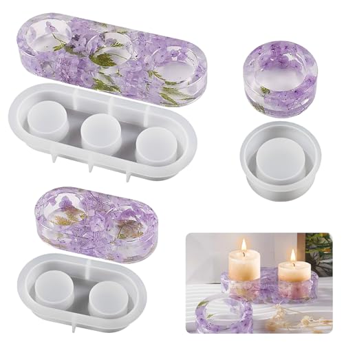 Bekecidi 3 st ljushållare hartsform, värmeljushållare silikonformar ljusstake epoxi hartsformar silikon gjutform värmeljus ljushållare formar för gör-det-själv-hantverk heminredning