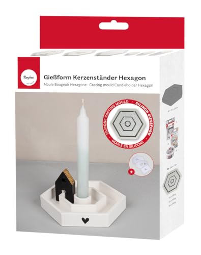 Rayher Silikon gjutform ljusstake hexagon, 16 x 14 x 2,5 cm, inkl. 3 x 5 stenciler, 36167000