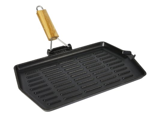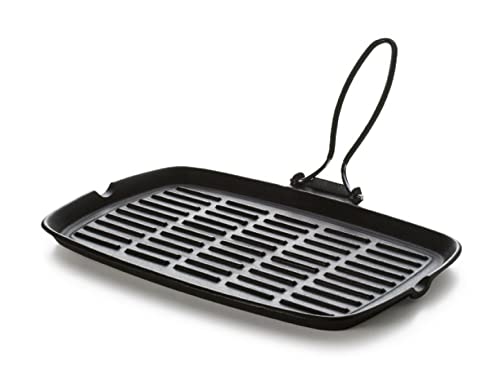 OVERMONT Gjutjärnsplatta, grillplatta, gjutjärn, dubbelsidig – grill med handtag 43,2 x 24,9 cm – för grill, spis, träkolgrill, gasgrill