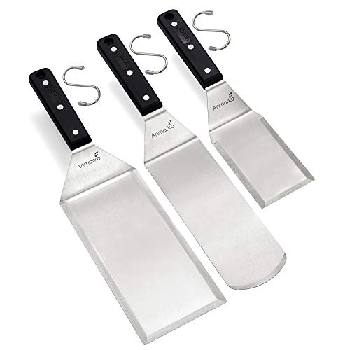 Anmarko Professionellt stekpanneset - rostfritt stål metallspatel och grillskrapa - tung stekspade grilltillbehör perfekt för gjutjärn grillpanna grill platt topp grill - kommersiell kvalitet