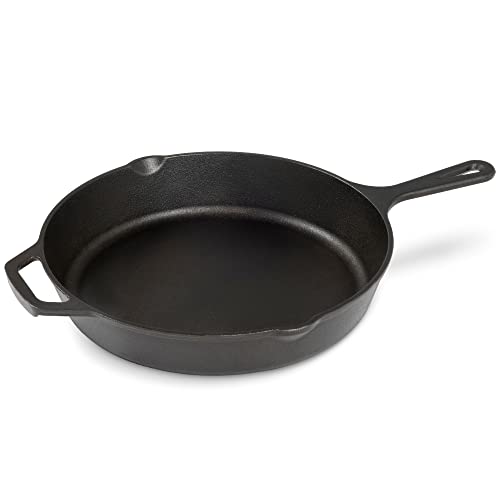 BBQ-Toro Gjutjärnsstekpanna 29 cm | Grillpanna i gjutjärn med handtag, handtag och två hällar, ribbad | gjutjärnspanna, grill, grillpanna, ugnspanna, gjutjärnspanna