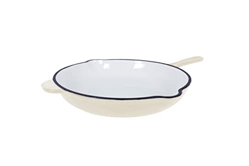 ECHTWERK Gjutjärnspanna med emaljbeläggning Gjutjärnspanna med två handtag och hällpip, lämplig för ugn, grill och induktion, grädde Ø 26,5 cm