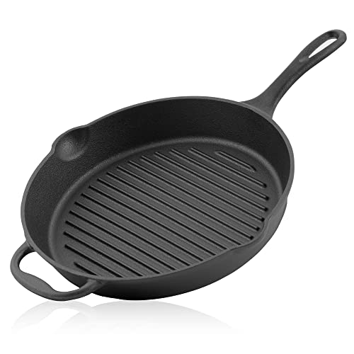 Grandwish Gjutjärnspanna, förkryddad rund grillpanna för pannkakor, grill, pizzapanna med handtag (31 cm)