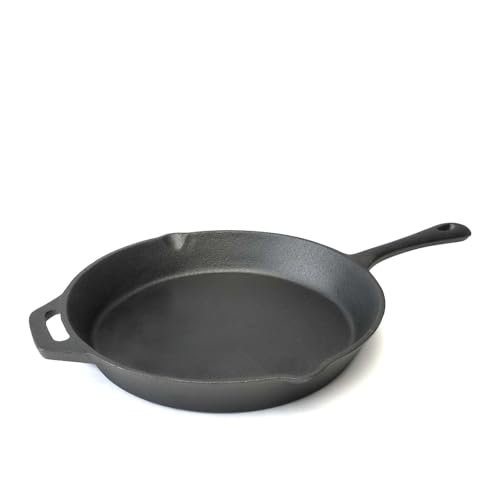 Navaris gjutjärnspanna – 30 cm förkryddad stekpanna med hjälphandtag, för ugn, spishäll, grill och lägereld, induktionsredo, hällande läppar, kraftig, med silikonhandtag