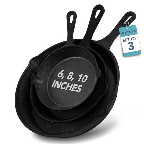 HEFTMAN Gjutjärnspanna, set med 3 – förkryddade non-stick stekpannor (6, 8, 25 cm) – ugnssäker induktionsstekpanna för alla koktyper, grill, spis