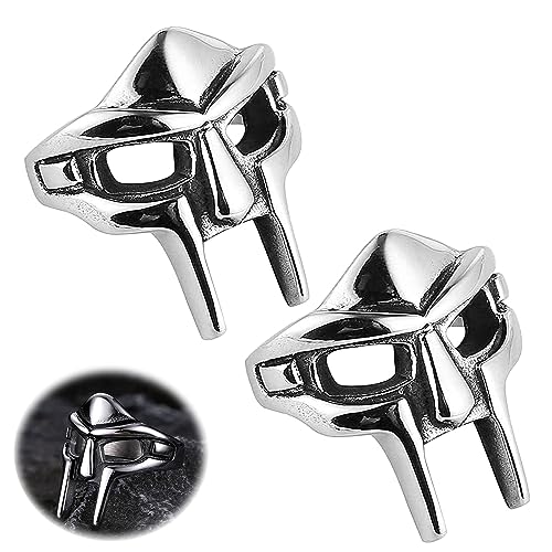 2 stycken Halloween-ringar, Doom ansiktsskydd gladiator stil ring, vintage ring av rostfritt stål, gotisk skalle ring rostfritt stål, nordisk pagan silver metallringar, punk gladiator-ring,