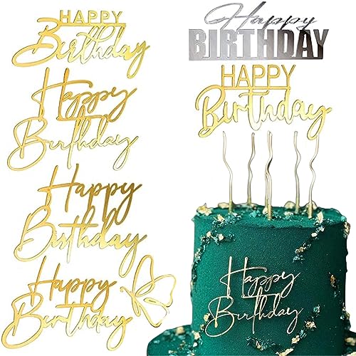 Irikdescia® 6-pack Happy Birthday-tårttillbehör, olika former för att få födelsedagstårta att glänsa, fjäril akryl födelsedagskalas tillbehör (guld, silver)
