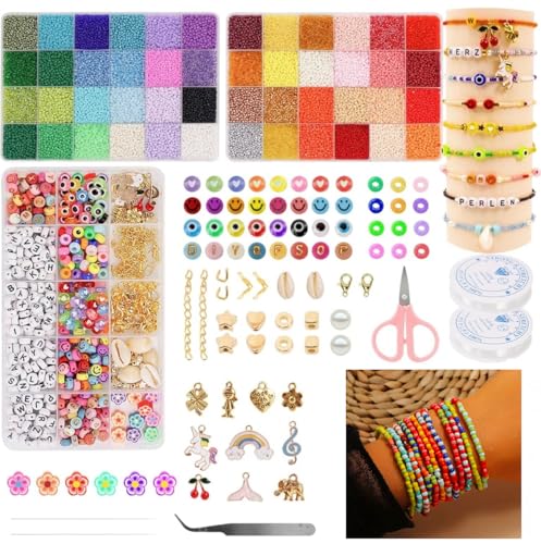 Eliano 42 000-delars Pärlset i Glas – 2mm Rocaille-pärlor för Smyckestillverkning med Bokstavspärlor, Smiley-pärlor och Tillbehör – Perfekt DIY-set för Barn & Vuxna