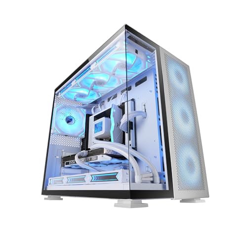 Mars Gaming MC-NOVA2, Gamingchassi Custom XXL E-ATX, Dubbelt Härdat Glas Kontinuerligt Utan Ram, Full Stöd för Vätskekylning, Flygplansaluminium 2mm, Dubbla Kammartorn-PC, USB-C, Vit