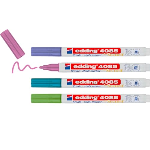 edding 4085 kolmarker - grön blå lila rosa (metallic) - 4 kolpennor - rund spets 1–2mm – vattenlöslig penna med tunn spets för krittalvor, fönster, glas, speglar – flytande kolmärkpennor opak täckning