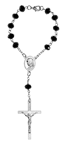 Kall present presentidé – kort bil radband för kvinnor och män med korshänge Mariakugg och glaspärlor färg svart (längd 17 cm), 17 centimeters, Glas, Glas
