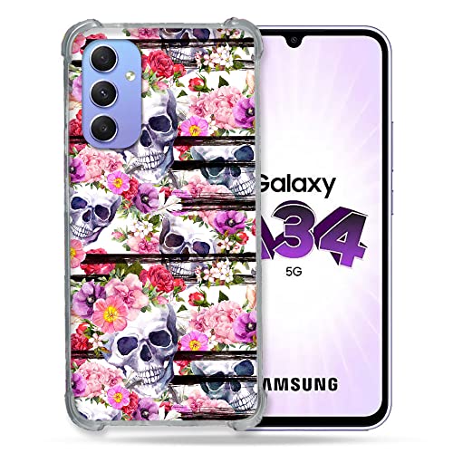 Cokitec Förstärkt fodral i härdat glas för Samsung Galaxy A34 5G dödskalle din nästa