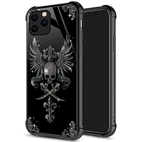 Fodral för iPhone 13, fodral för iPhone 13, fodral för kvinnor och flickor, stötsäkert och reptåligt diamant dödskalle mönster i organiskt glas för Apple iPhone 13 15,5 cm
