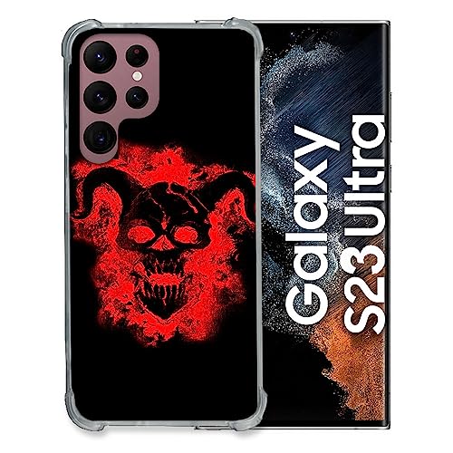 Cokitec Spetsat fodral i härdat glas för Samsung Galaxy S23 ultra dödskalle djävulen