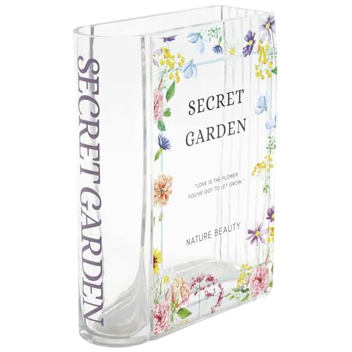 KRYSTHIA Bokvas i glas, bokvaser för blommor, klara böcker formad vas för tulpaner, små blomvaser för vardagsrum, kontor, soffbord, bokhylla dekor